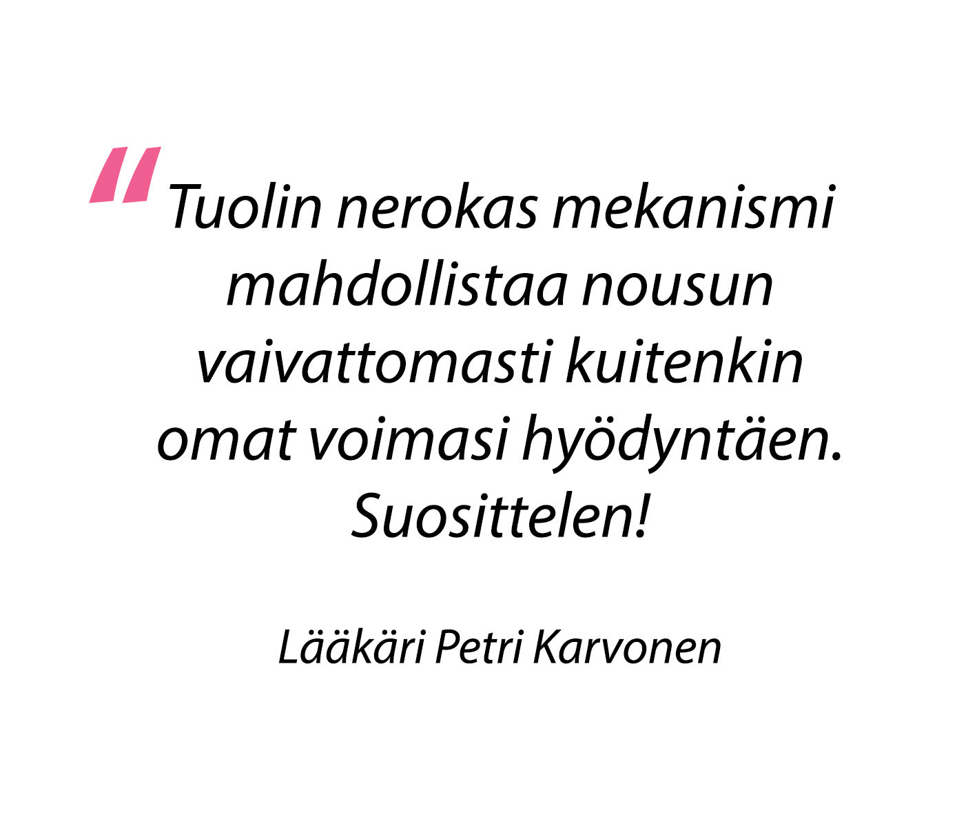 - Olet itse tuolin ainoa moottori! Vahvistaa lihaksia kuin huomaamatta.