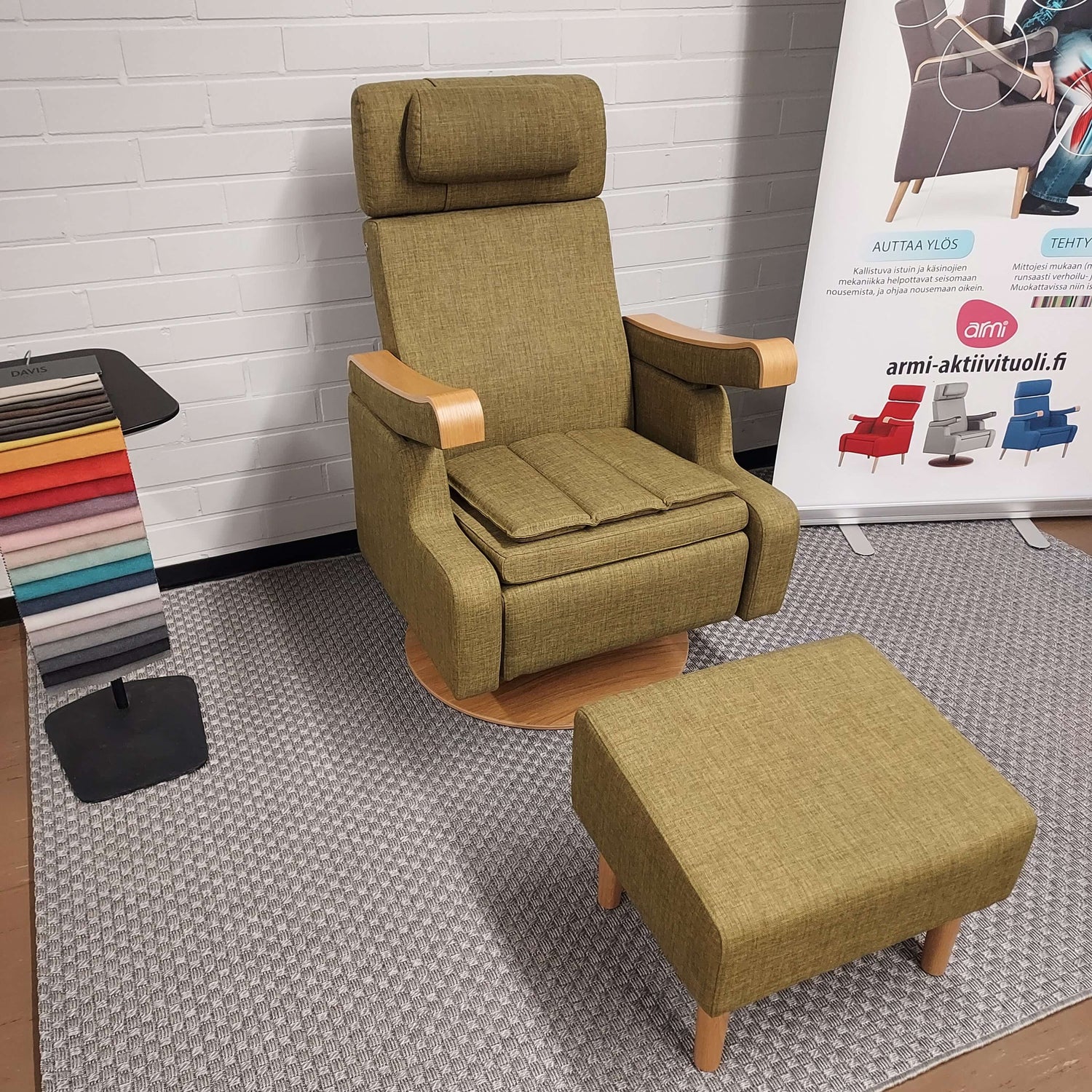 Tämä valmistajan huoltama Armi Style Aktiivituoli on sekä täysipainoinen, mukava kodin huonekalu että aktiivinen harjoitusväline ja seniorituoli. Se on ergonomiatuoli ja nousuaputuoli, jonka ainoana moottorina toimii istuja itse.